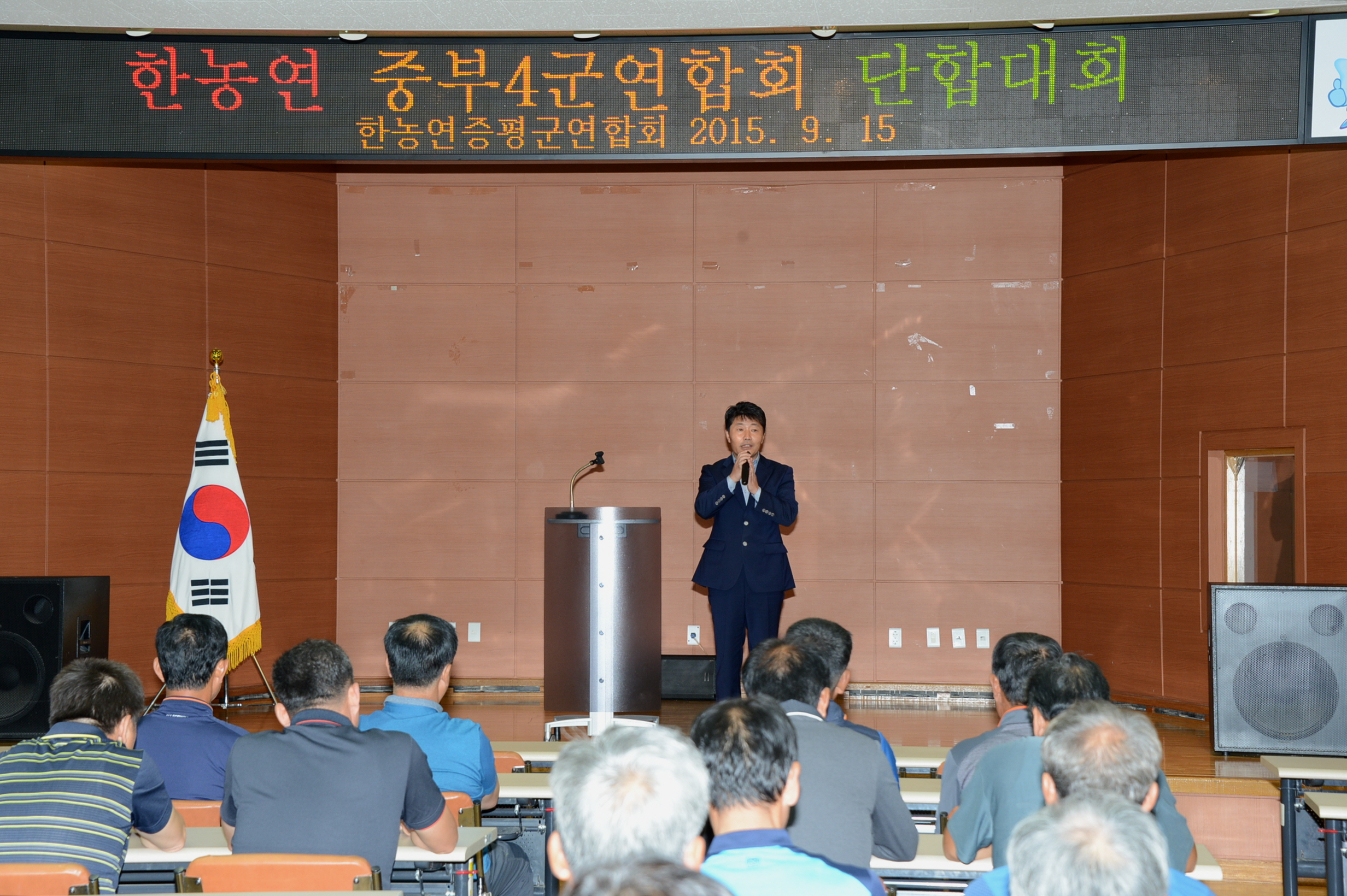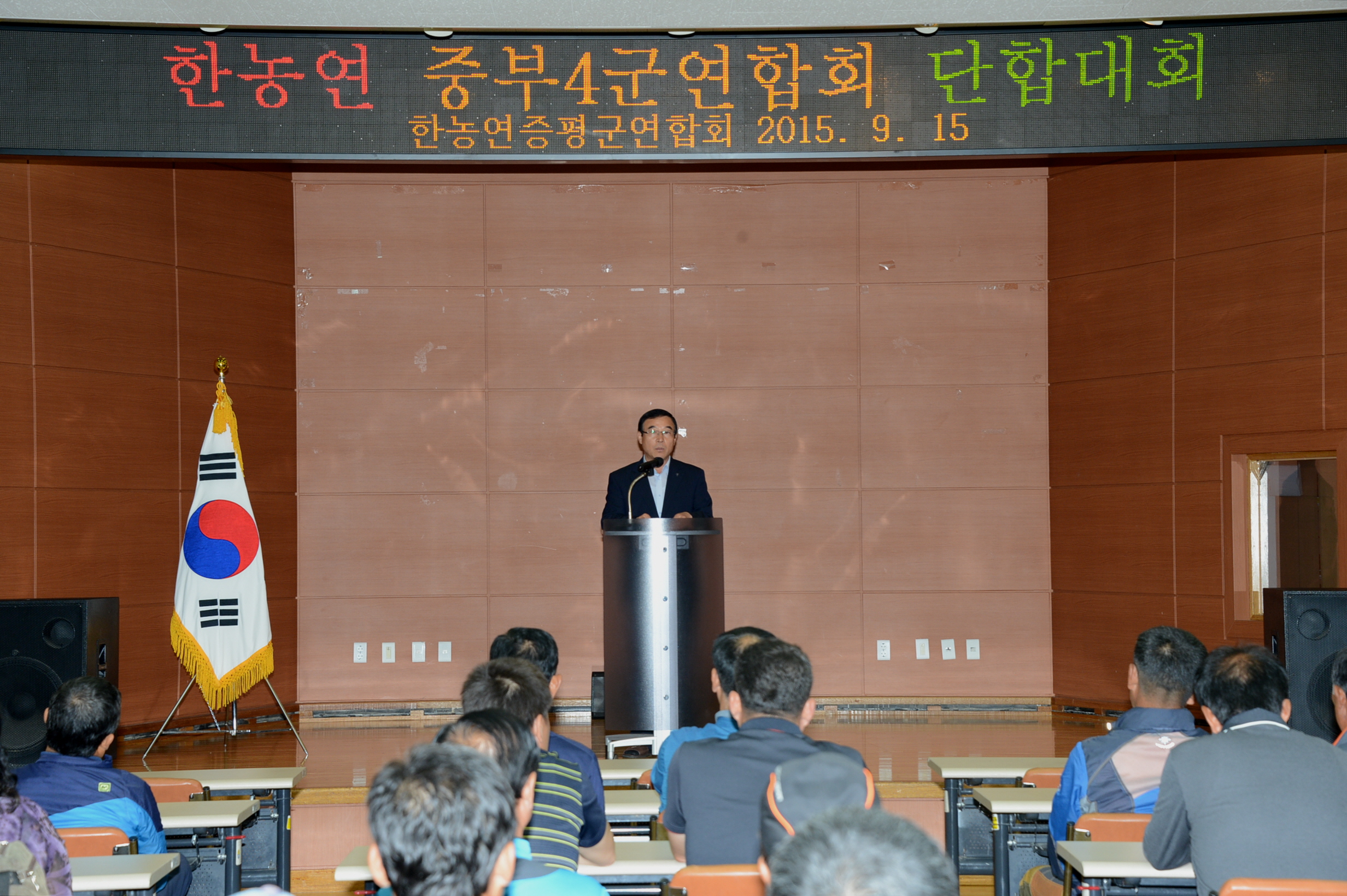 증평·괴산·음성·진천 등 중부 4군의 농업을 이끄는 농업경영인들의 화합행사인‘한농연 중부4군 단합대회’가 15일 오전 10시 최창국 증평부군수를 비롯해 농업경영인 임원 및 회원 등 200여명이 참석한 가운데 증평 율리 휴양촌에서 성황리에 개최됐다.(보도자료실 참조)