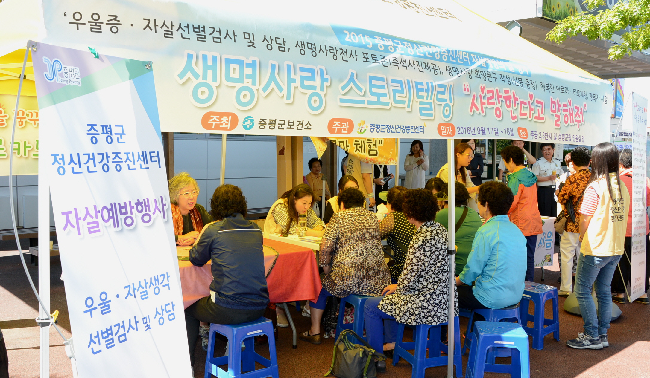 증평군과 증평군정신건강증진센터(센터장 김민경)에서는 자살예방의 날을 맞아 17일부터 18일까지 이틀간 군청 민원실앞에서 다채로운 자살예방 행사를 실시했다.[보도자료실 참조]