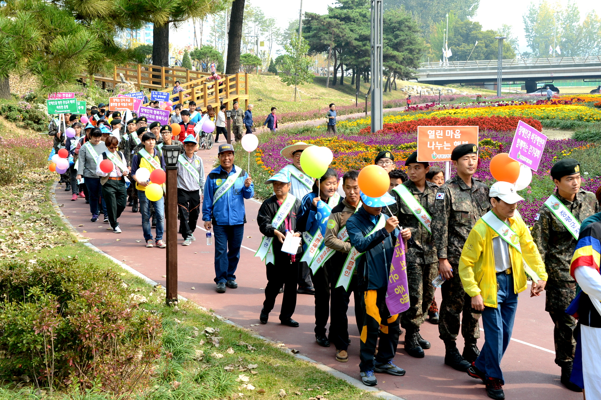 증평군장애인복지관(관장 정찬연)은 8일 오전 10시 증평군청 및 증평보강천 일원에서 장애인, 비장애인 200여명이 참석한 가운데 장애에 대한 사회적 인식개선과 사회통합의 환경을 조성하기 위한‘2015년 장애인식 개선 걷기 대회’를 진행했다. (보도자료실 참조)