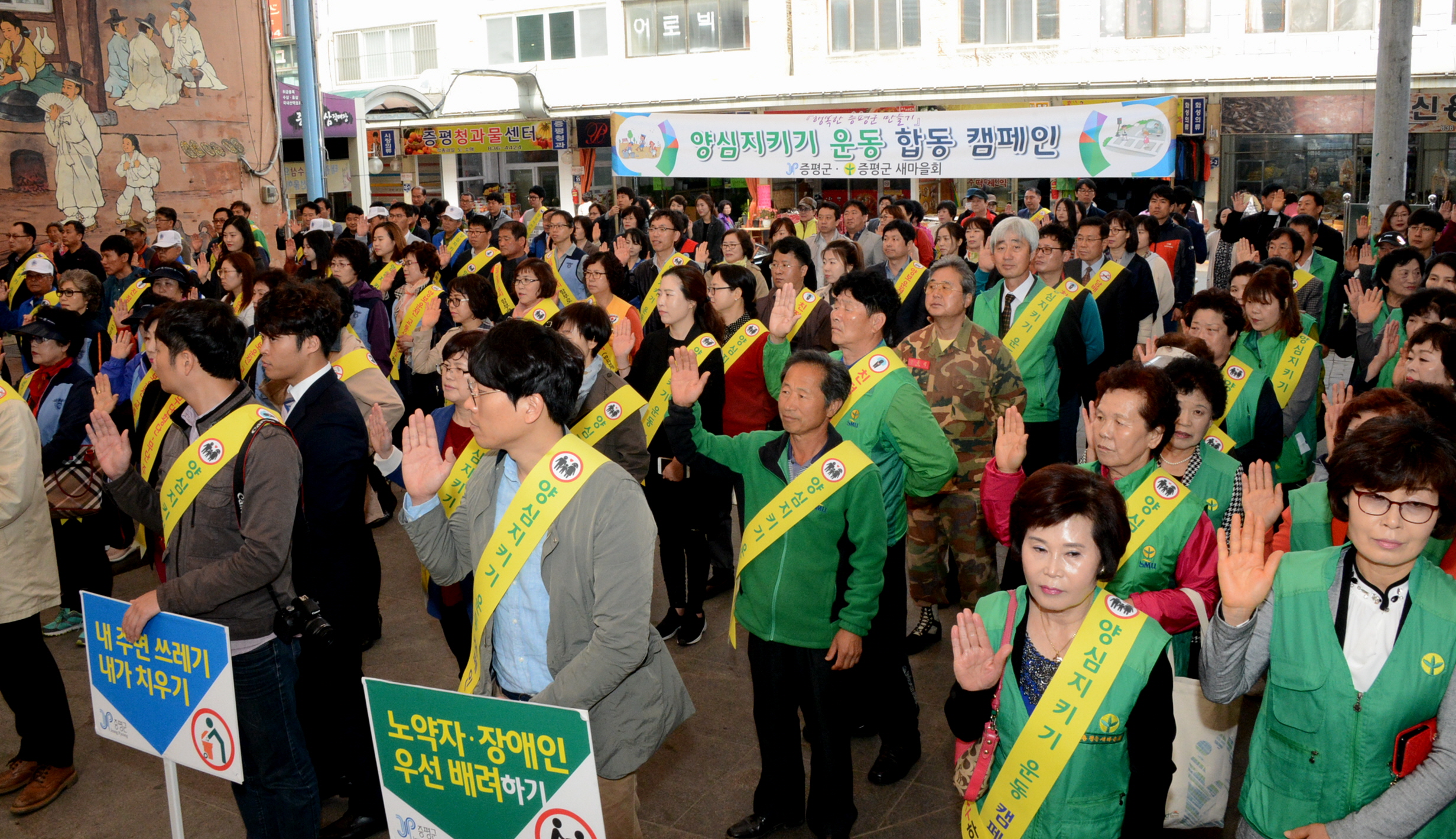 증평군은 오전 9시 30분부터 증평장뜰시장 다목적 광장에서 공무원과 각 기관・사회단체 회원 등 200여명이 참석한 가운데 ‘양심 지키기 운동 합동 캠페인’을 가졌다.[보도자료실 참조]