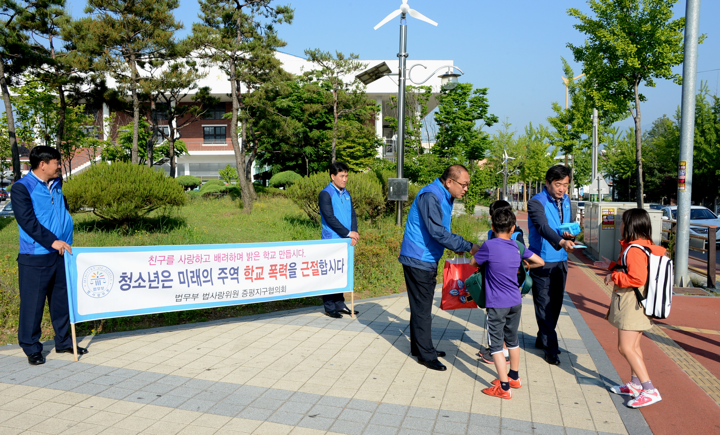 법무부 법사랑위원 증평지구협의회(회장 연광영)는 17일 증평군청사거리․증평초교․증평중학교 앞에서 30여명의 위원이 참여한 가운데 군민과 학생을 대상으로 범죄예방 및 청소년선도캠페인을 가졌다.