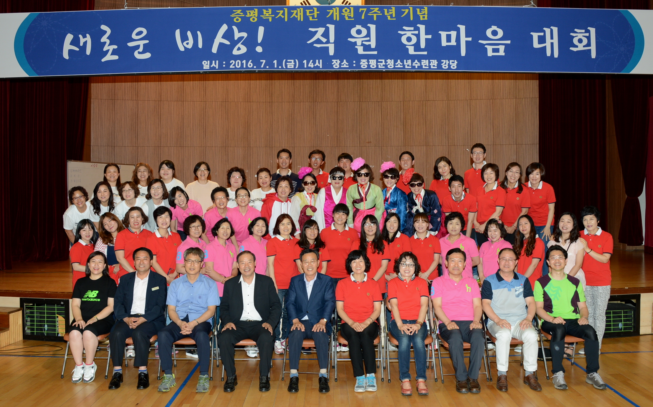 증평복지재단(이사장 신재영)은 1일 오후 2시 증평 청소년수련관에서 재단 임원 및 산하시설 직원 등 100여명이 참석한 가운데 재단 7주년 개원 기념 직원 한마음 대회를 개최했다.(보도자료실 참조)