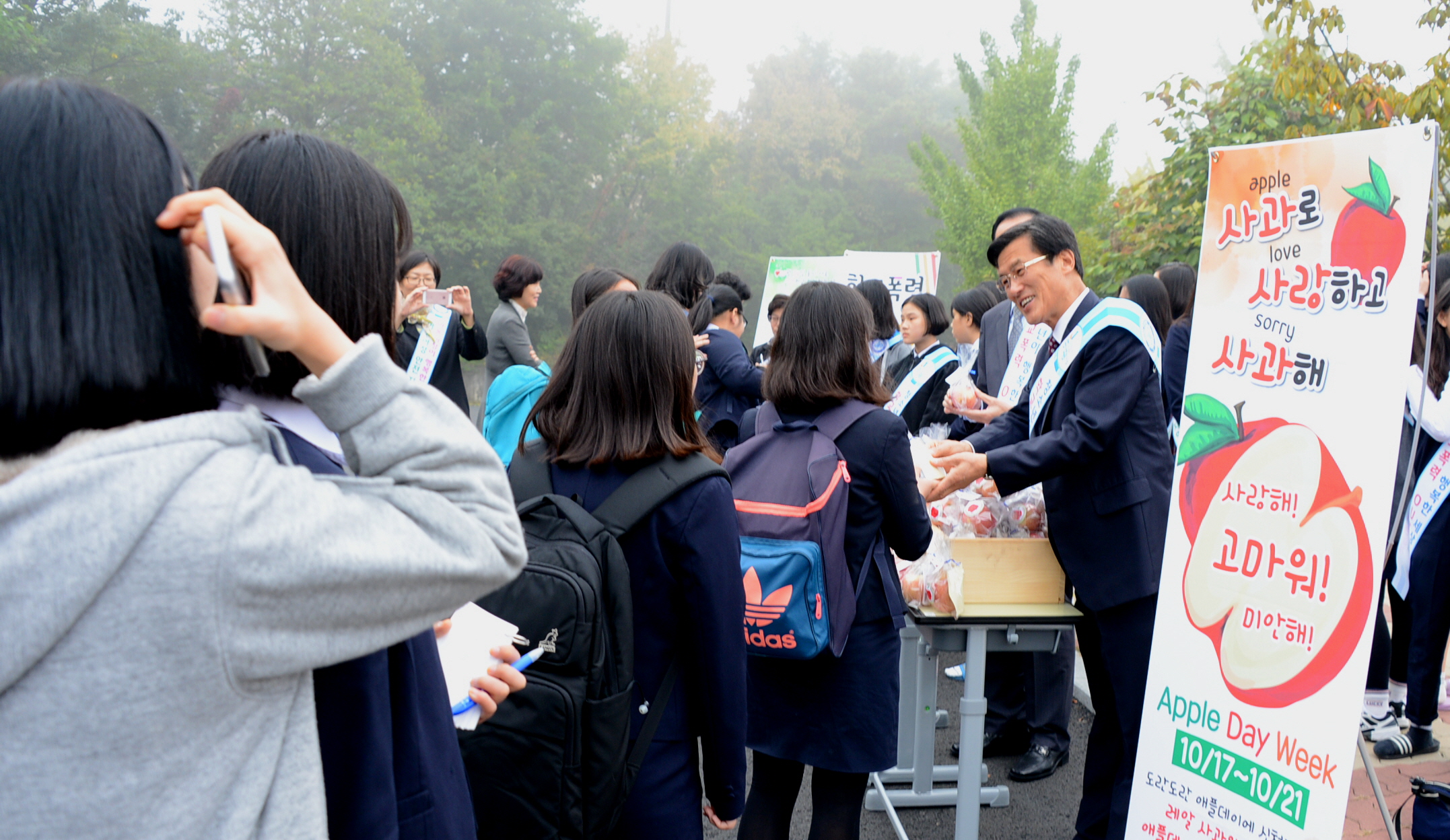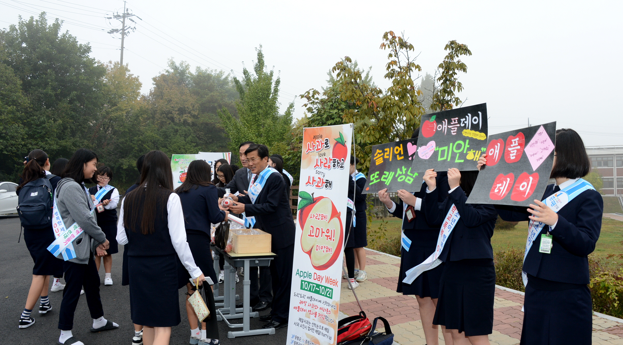 증평군이 학교폭력예방을 위해 지역 내 초중고 6개교, 증평군아동여성안전지역연대, 증평군청소년상담복지센터 관계자와 학생 등 2500여명이 함께 참여하는 애플데이를 운영한다.(보도자료실 참조)