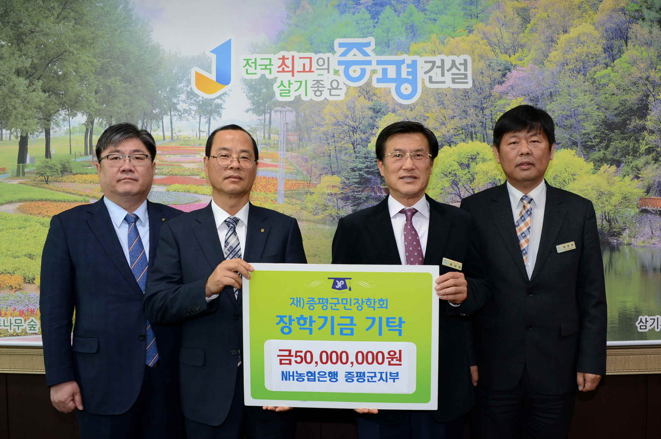 NH농협은행 증평군지부(지부장 서정덕)에서 지역의 우수 인재 양성을 위해 써달라며 (재)증평군민장학회(이사장 홍성열 증평군수)에 5천만원을 장학기금으로 출연했다.(보도자료실 참조)