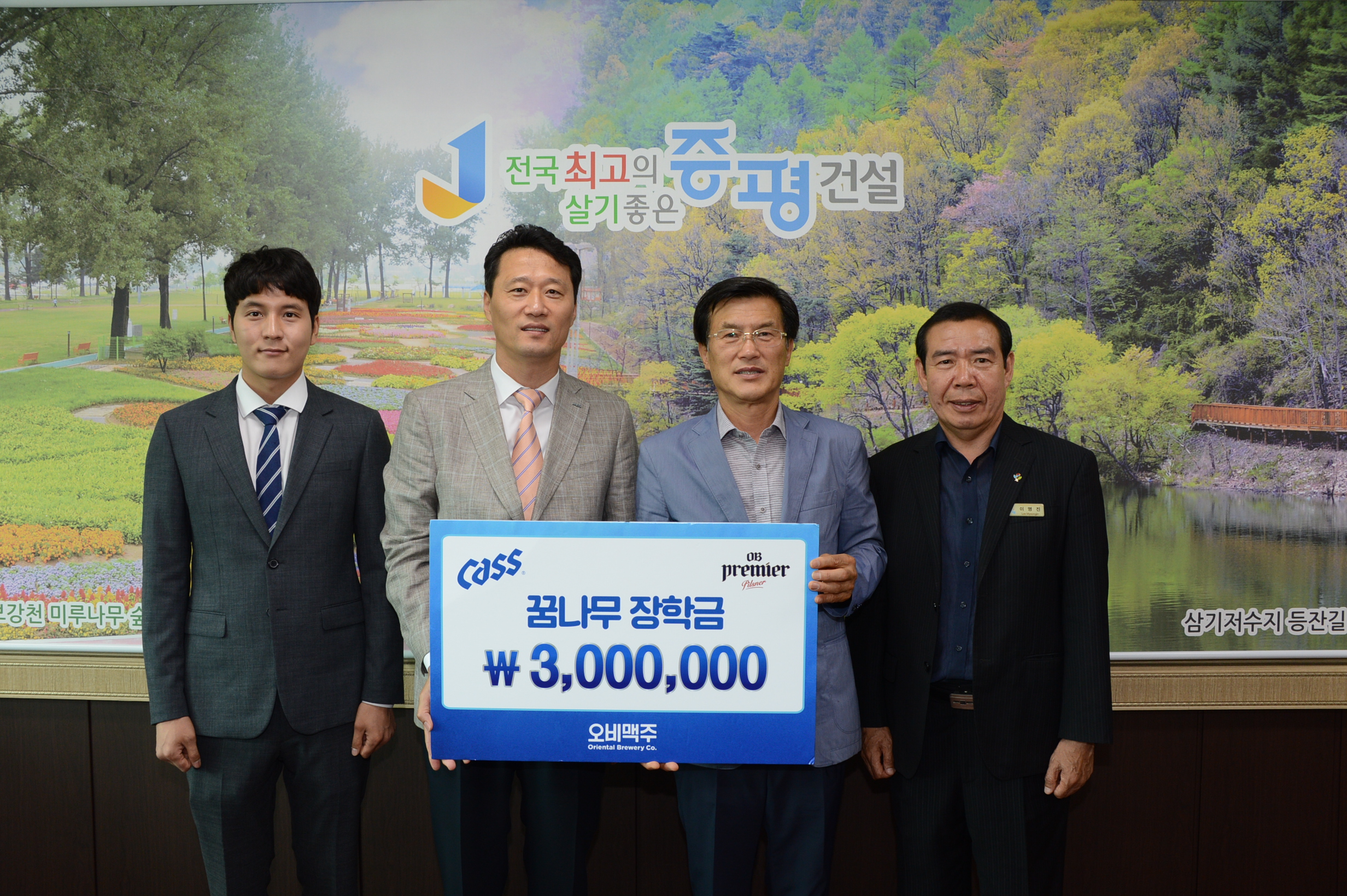 OB맥주 청주지점(지점장 김수갑)은 저소득 아동의 자립을 위해 증평군에 300만원을 기탁했다.(보도자료실 참조)