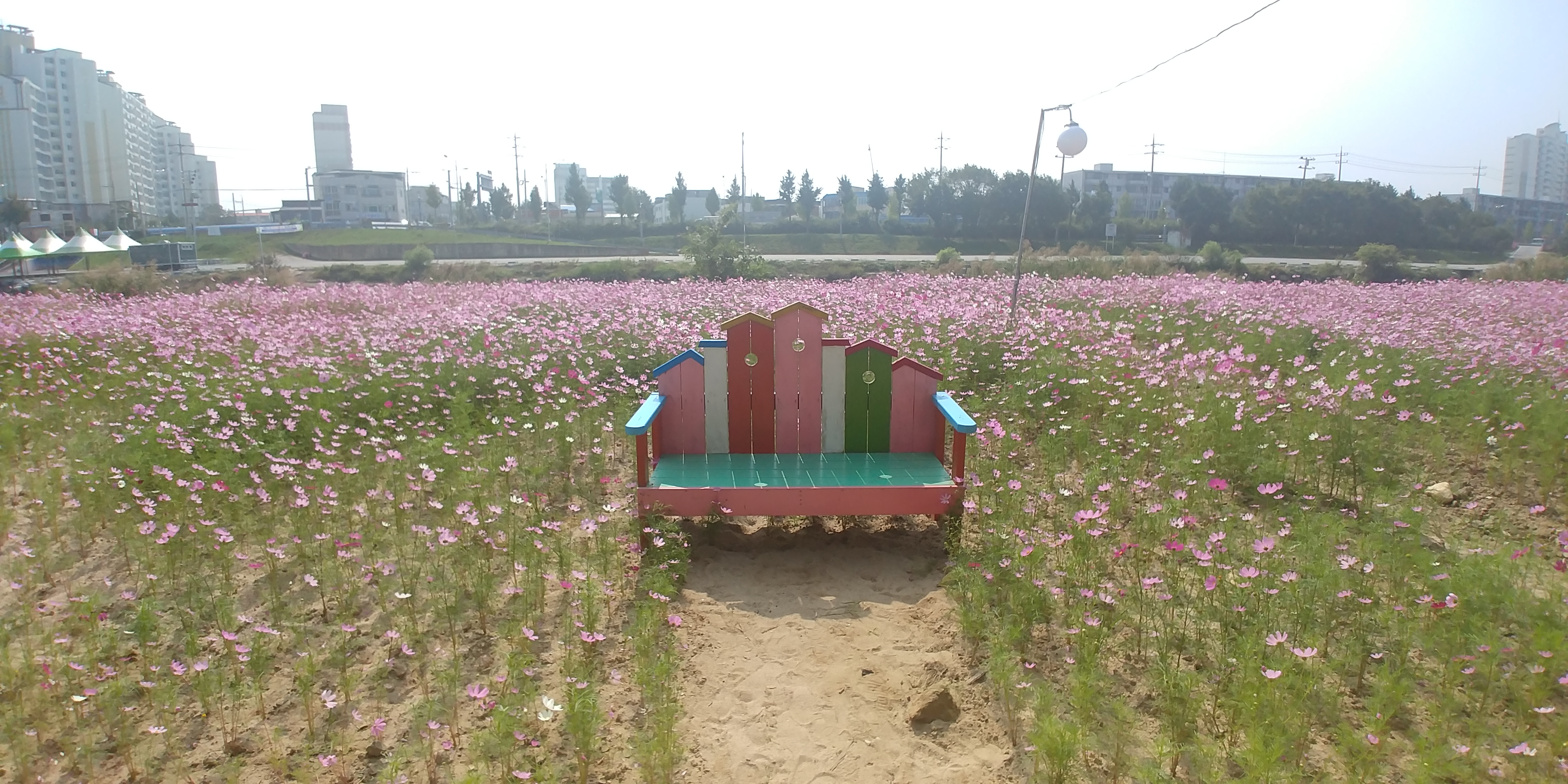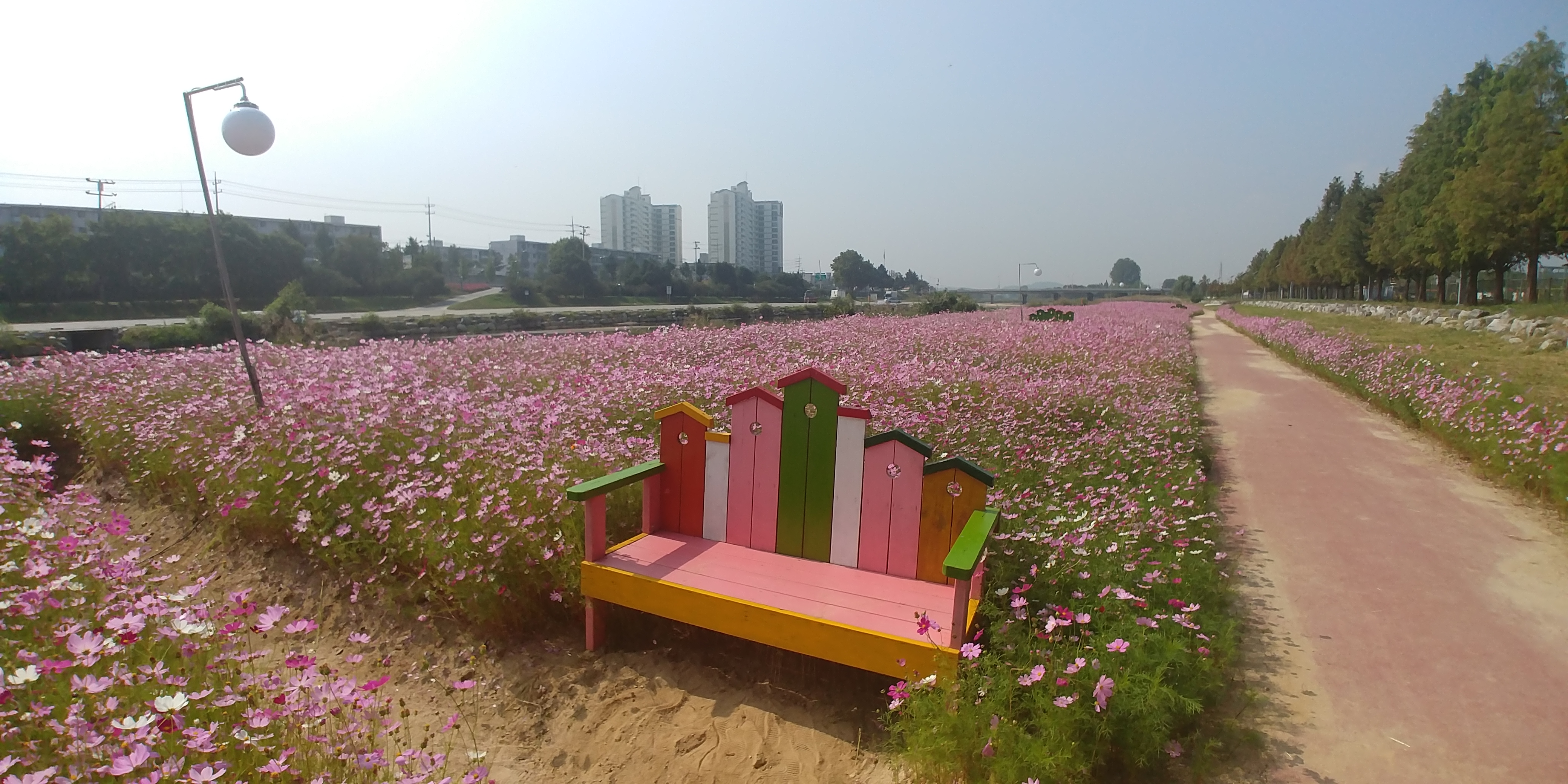 증평군은 인삼골축제(9.28~10.1.)를 찾는 관광객에게 아름다운 볼거리를 제공하기 위해 보강천변에 코스모스길을 조성했다.(보도자료실 참조)