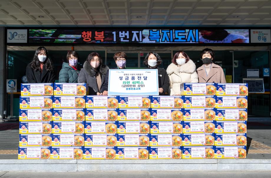 증평 찬송교회(목사 송희진)는 지난 11일 증평군에 라면 40박스(99만원상당)를 기탁했다.