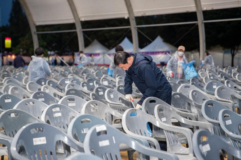 이재영 증평군수는 취임 100일을 맞이해 이른 새벽 증평인삼골축제가 열리고 있는 보강천 미루나무 숲 일원에서 청소 봉사 활동을 실시 했다.