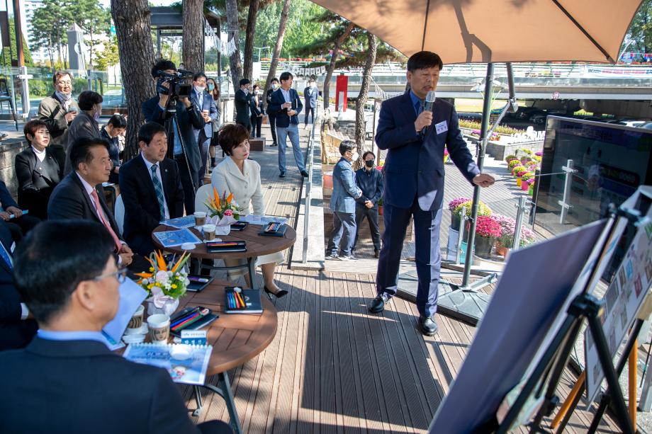 김영환 충북도지사가 11일 증평군을 방문해 도민과의 대화의 시간을 갖고 보강천 미루나무숲을 찾았다.