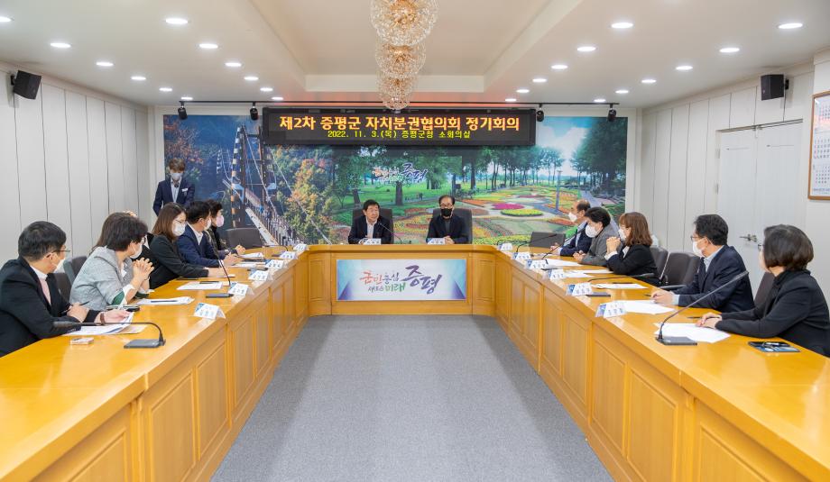 증평군은 3일 군청 소회의실에서 증평군 자치분권협의회(공동위원장 이재영 증평군수, 이종일) 2차 정기회의를 개최했다고 밝혔다.