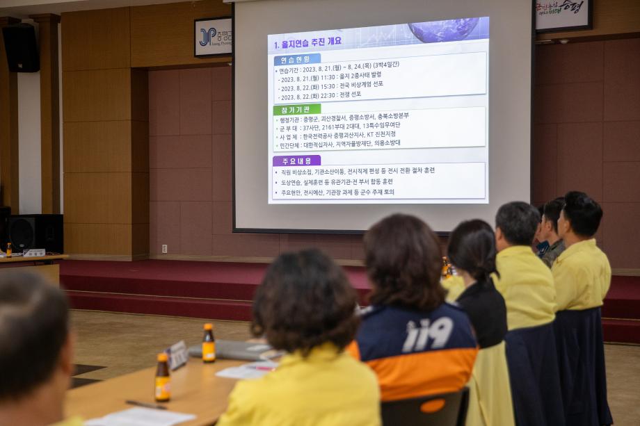 충북 증평군은 18일 올해 을지연습의 성과를 확인하고 민·관·군·경 등 유관기관과 긴밀한 협조체계를 공고히 하기 위해 군청 대회의실에서 3분기 통합방위협의회를 개최했다.