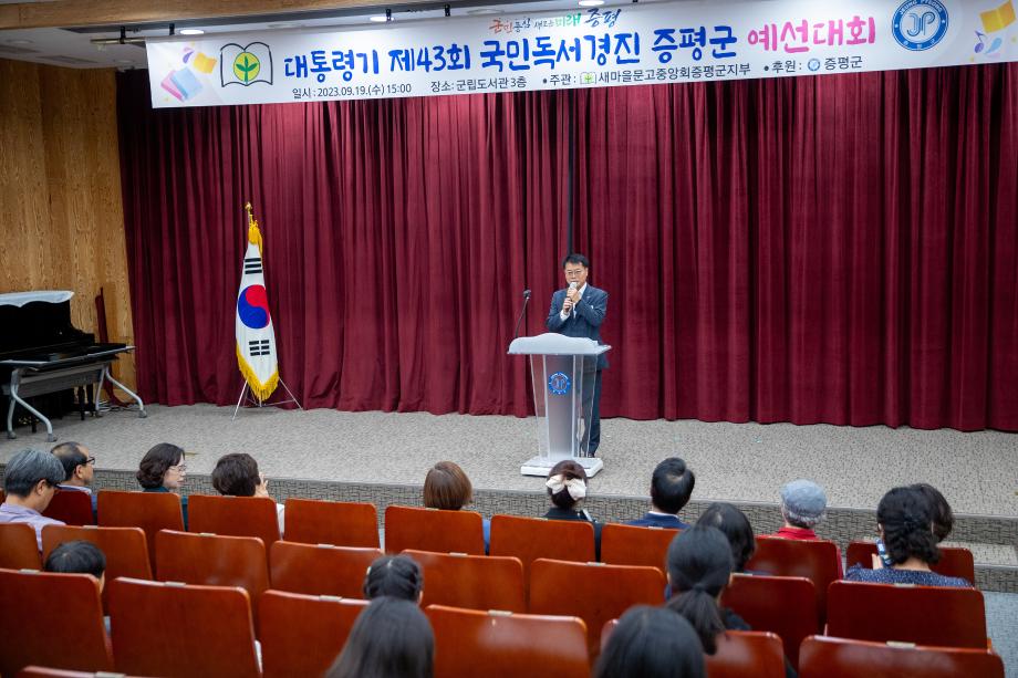 새마을문고중앙회 증평군지부(회장 박영미)는 19일 국민의 독서문화 생활화를 실천하고 건전한 가치관을 확립해 국민 문화 수준을 향상하기 위한 대통령기 제43회 국민독서경진대회 증평군 예선대회를 개최했다.