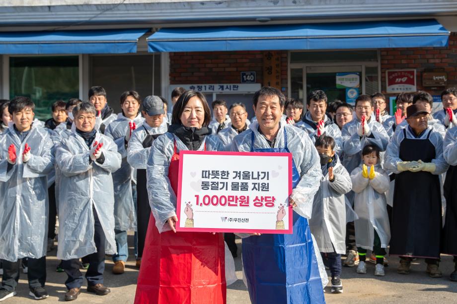 ㈜우진산전(대표 김정현)은 지난 18일 증평군 도안면을 찾아 ‘따뜻한 겨울나기, 연탄나눔’을 실천했다.