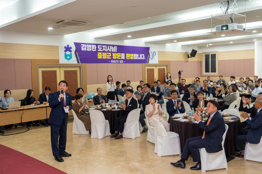 충북 증평군은 김영환 충북도지사가 28일 군을 방문해 지역 현안 및 도·군정운영방향을 공유하는 소통의 시간을 가졌다고 밝혔다.