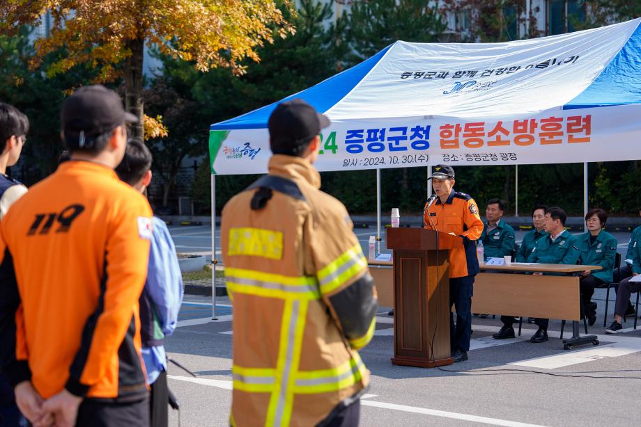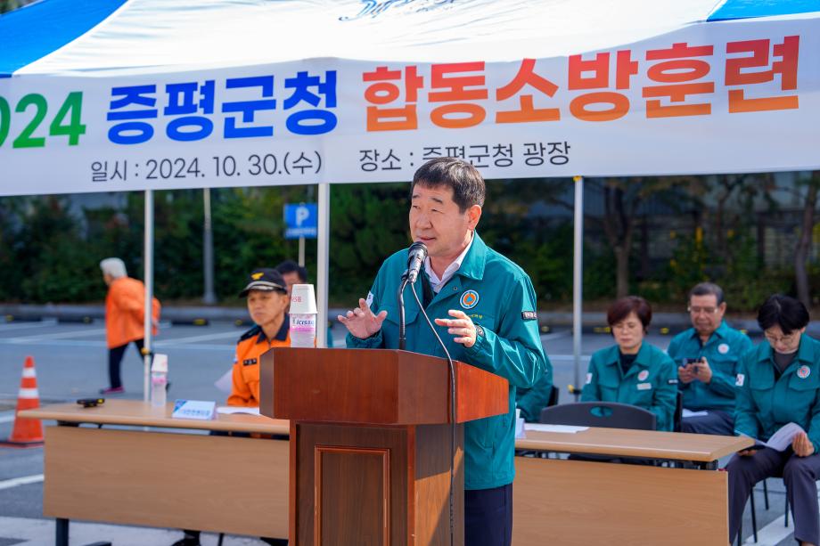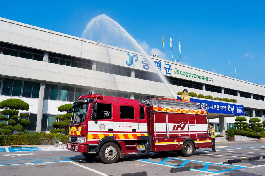 충북 증평군은 30일 군청 광장에서 증평소방서 증평119안전센터와 합동소방훈련을 실시했다.