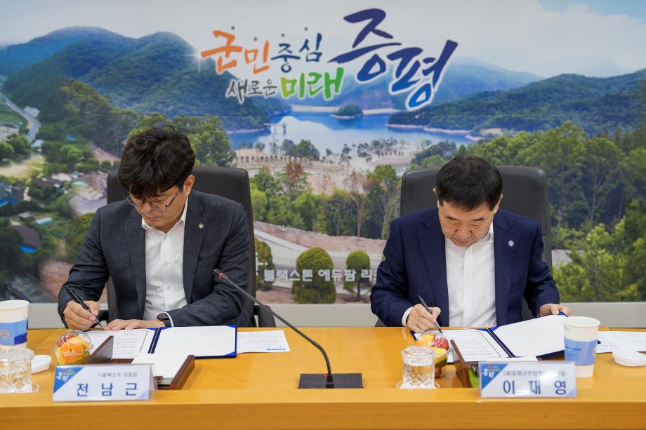 (재)증평군민장학회(이사장 이재영)와 ㈜충북소주(충북지점장 전남근)가 6일 증평군청 소회의실에서 지역 인재 양성을 위한 장학기금 조성협약을 체결했다.