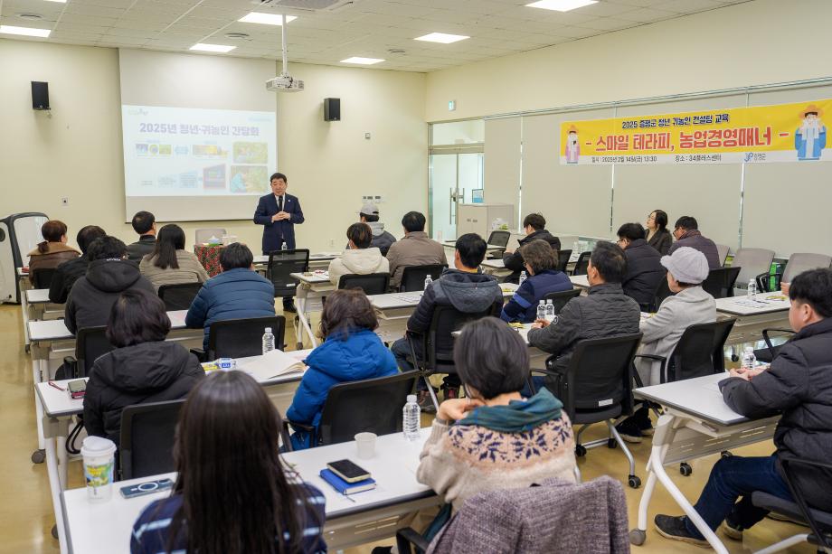 충북 증평군이 14일 34플러스센터에서 귀농인과 청년농업인의 경쟁력을 높이기 위한 맞춤형 컨설팅 교육을 실시했다.