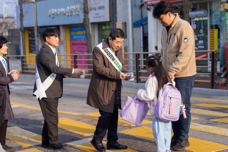 충북 증평군은 21일 증평초등학교 정문 앞에서 ‘아이 먼저, 어린이 안전 합동 캠페인’을 개최했다.