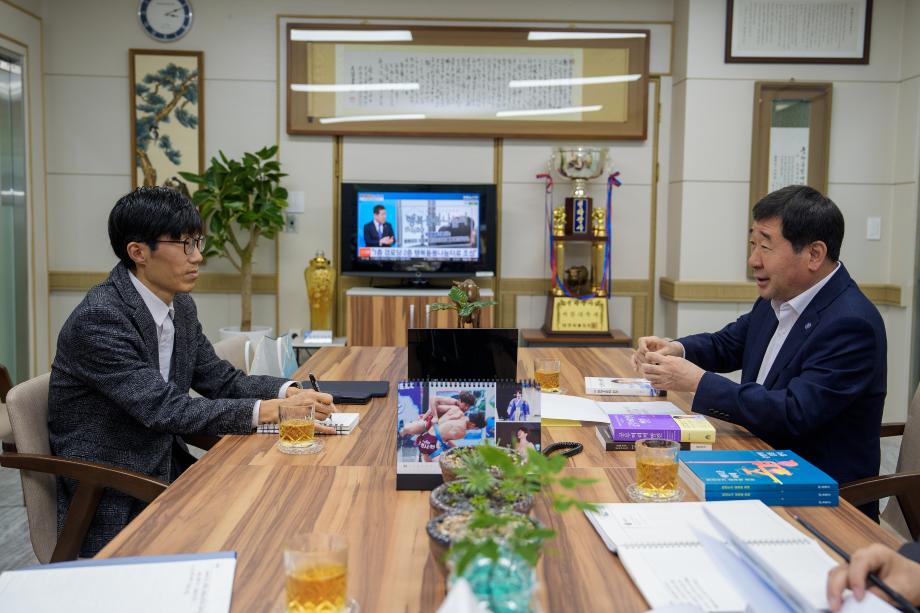 이재영 증평군수가 입시 및 교육전문가 심정섭 더나음연구소장과 만나, ‘미래지향적 교육도시 증평’ 실현을 위한 비전과 전략을 공유했다.