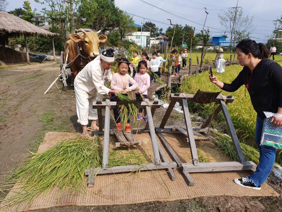 나래 어린이집에서 증평 민속박물관 나들이를 나왔네요. 우리가 먹는 밥이 만들어지는 과정중 벼수학 체험을 하고 예쁜 브로치도 만들어 보았네요. 대장간과 옛 날의 광, 한옥도 구경했네요.