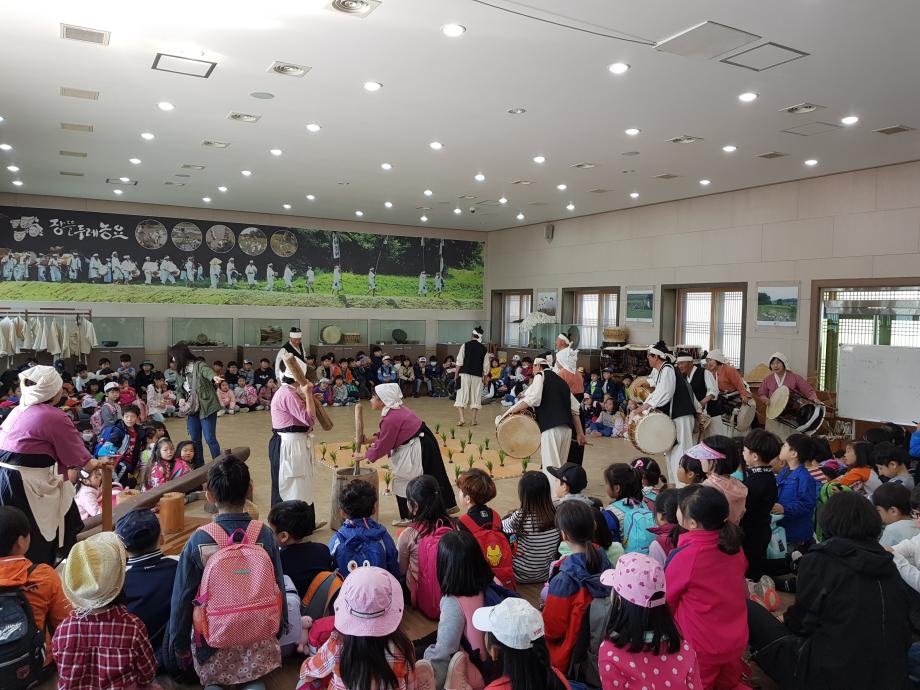 우리 친구들 옹기종기 모여 장뜰두레농요 공연도 관람하고 익숙하지는 않지만 농요에 맞춰 어깨춤도 들썩들썩 추기도 했는데요.