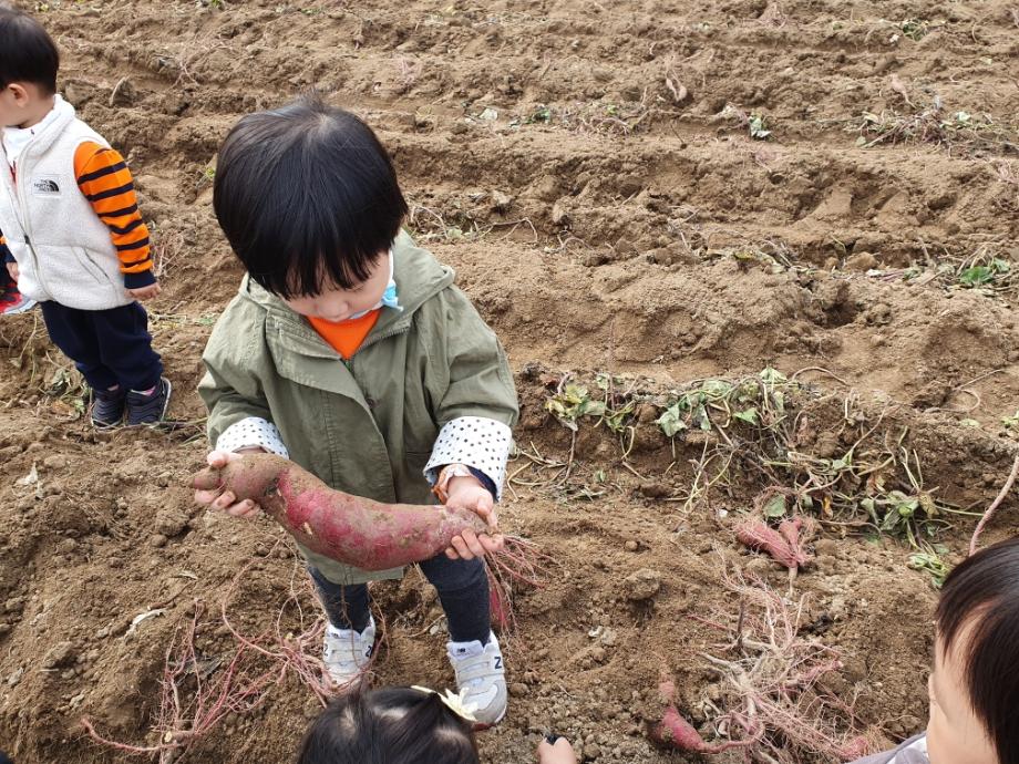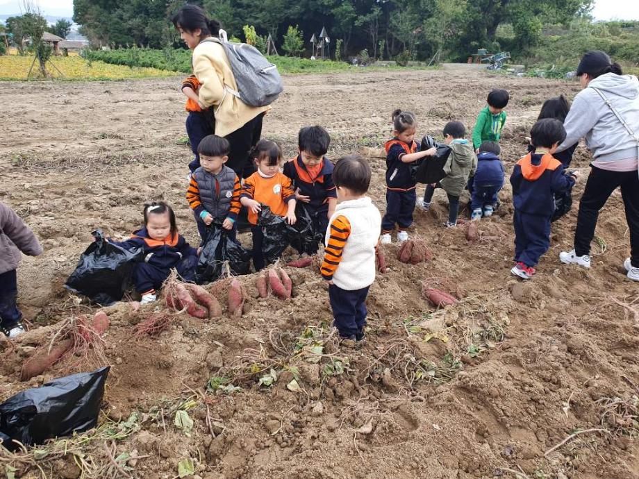 아가페 어린이집 친구들이 고구마캐기 체험을 하러 왔네요. 추운 겨울하면 김이 모락모락 피어오르는 군고구마가 절로 생각이 나는데 너도나도 부모님 및 형제들과 나눠먹겠다고 고사리 같은 손으로 검정봉지에 정신없이 고구마를 담고 있네요. 오늘은 가족들과 즐거운 고구마 파티 하는날!!