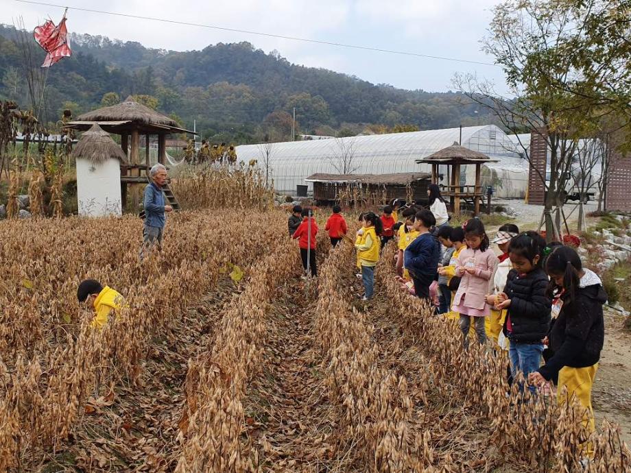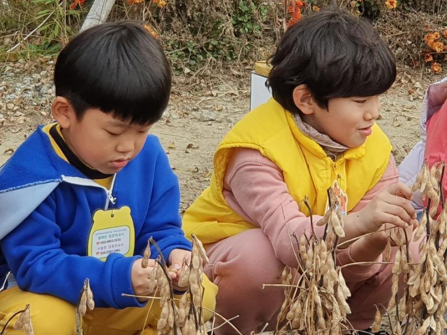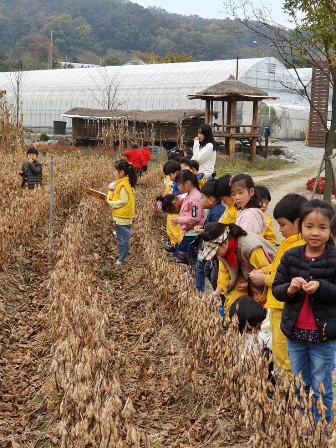 YWCA 어린이집에서 야외 콩밭 견학을 왔네요. 지난번에 한번 와봐서 인지 낯설어 하지도 않고 잘 아는 곳 방문한 표정들이네요. 콩밭을 데리고 가니 우리집에 검은콩 있다는 친구들, 콩밥은 잘 먹는다는 친구가 있는 방면 잘 안 먹는다는 친구들 등 한마디씩들 하네요.