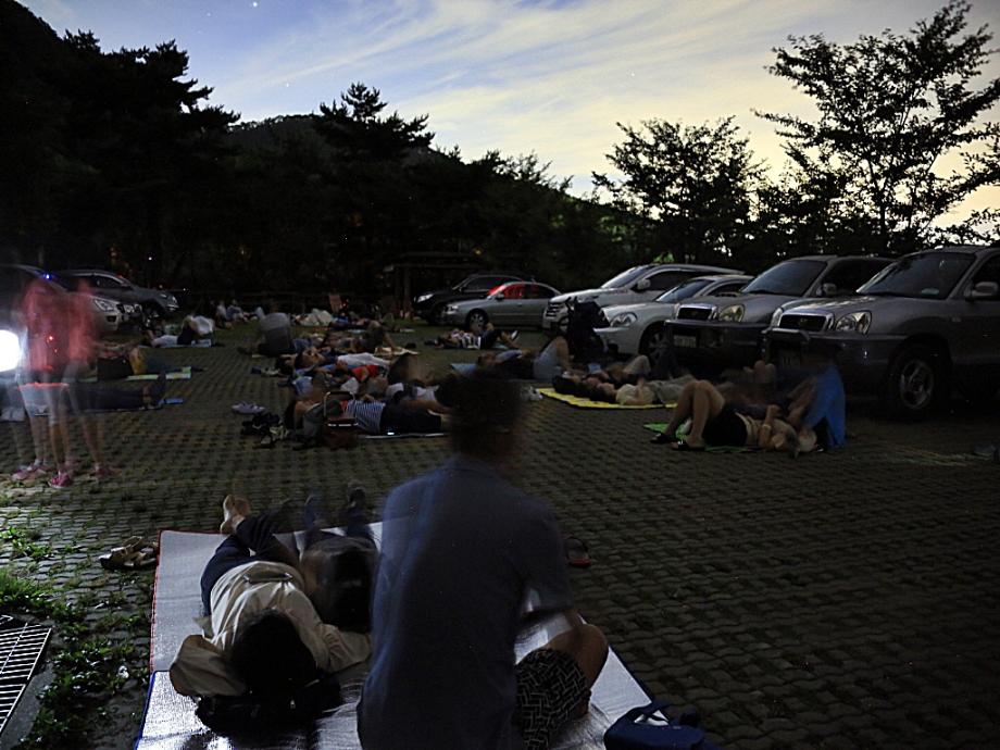 페르세우스 유성우 떨어지는 날 관람객으로 가득찬 천문대